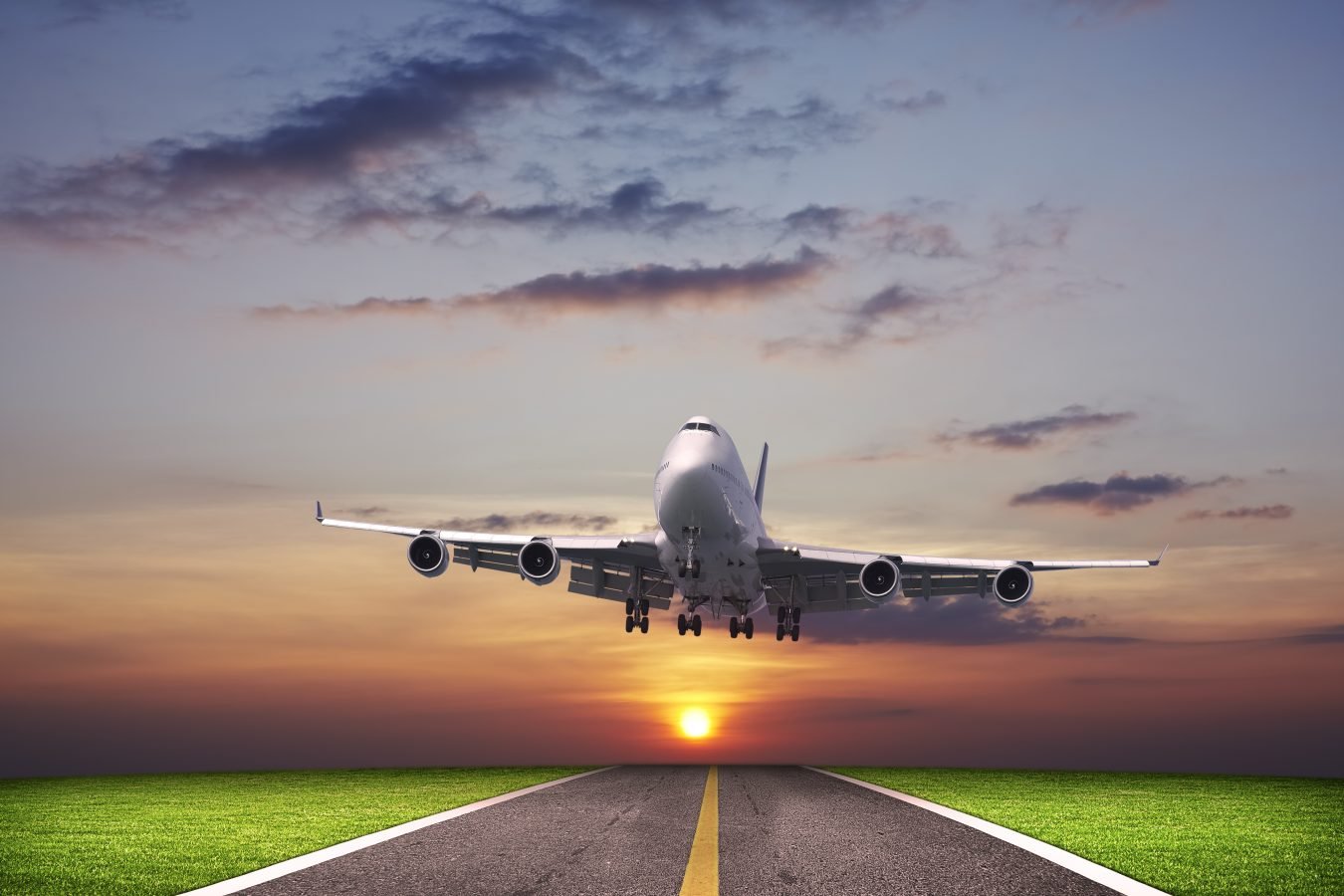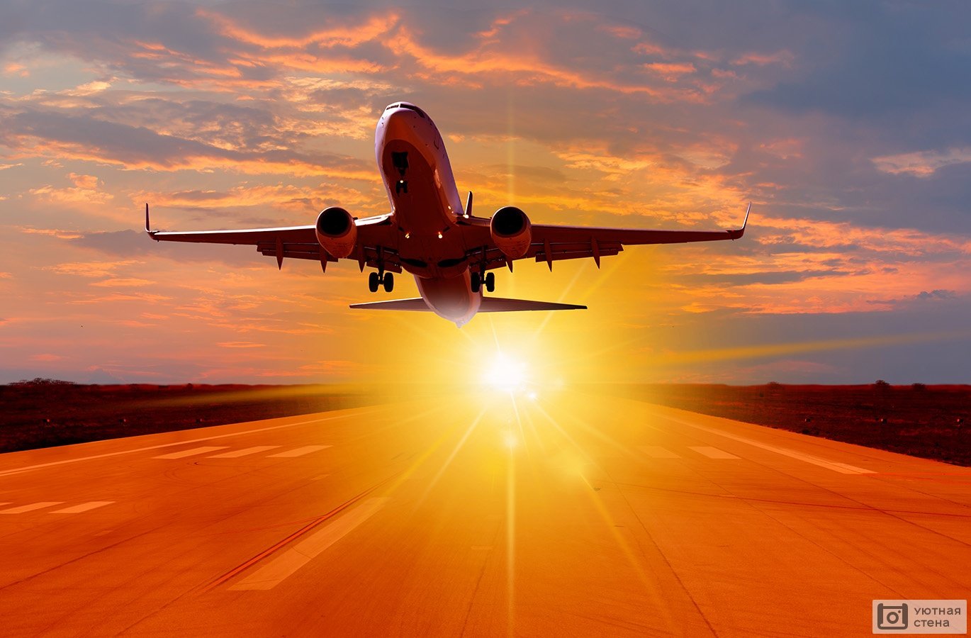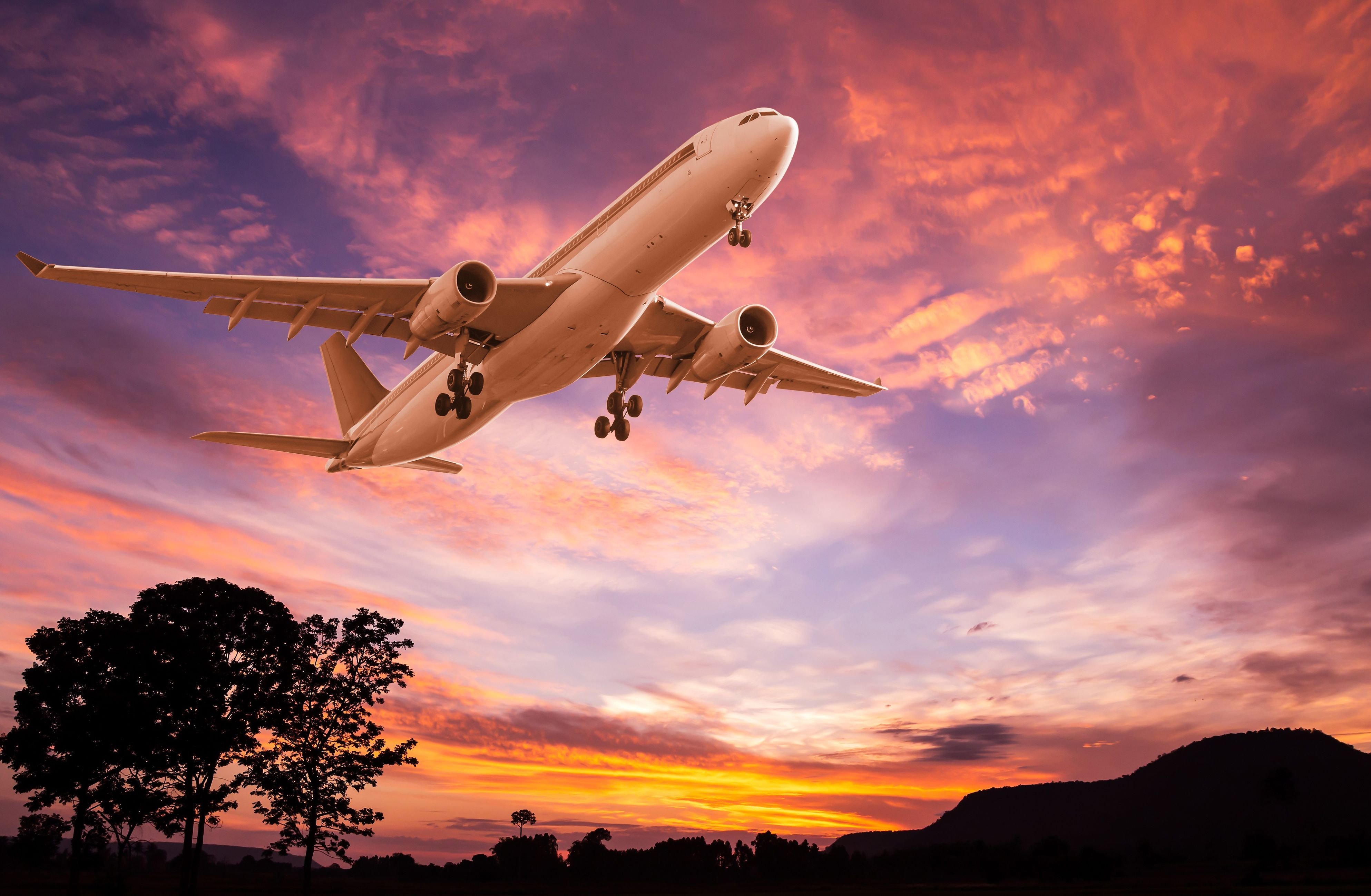 Самолет взлетает на закате