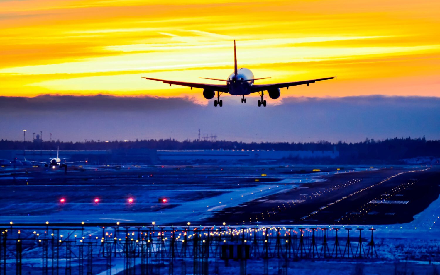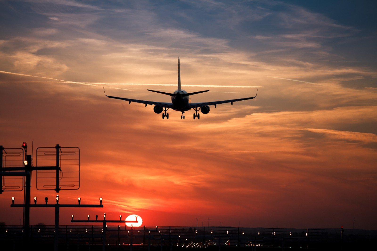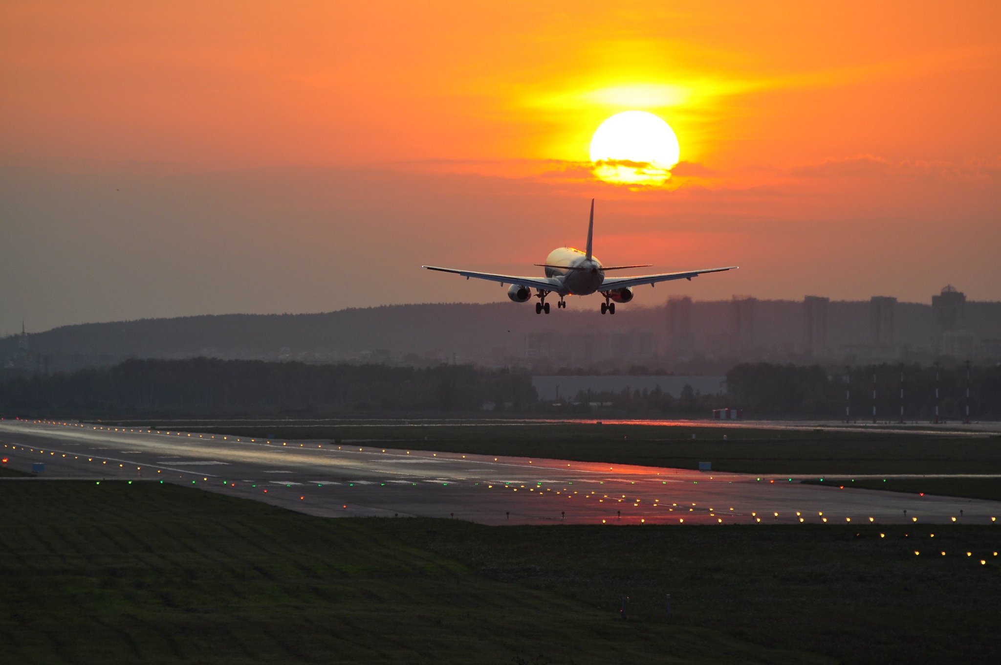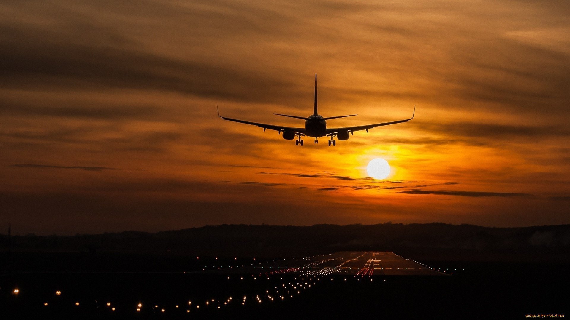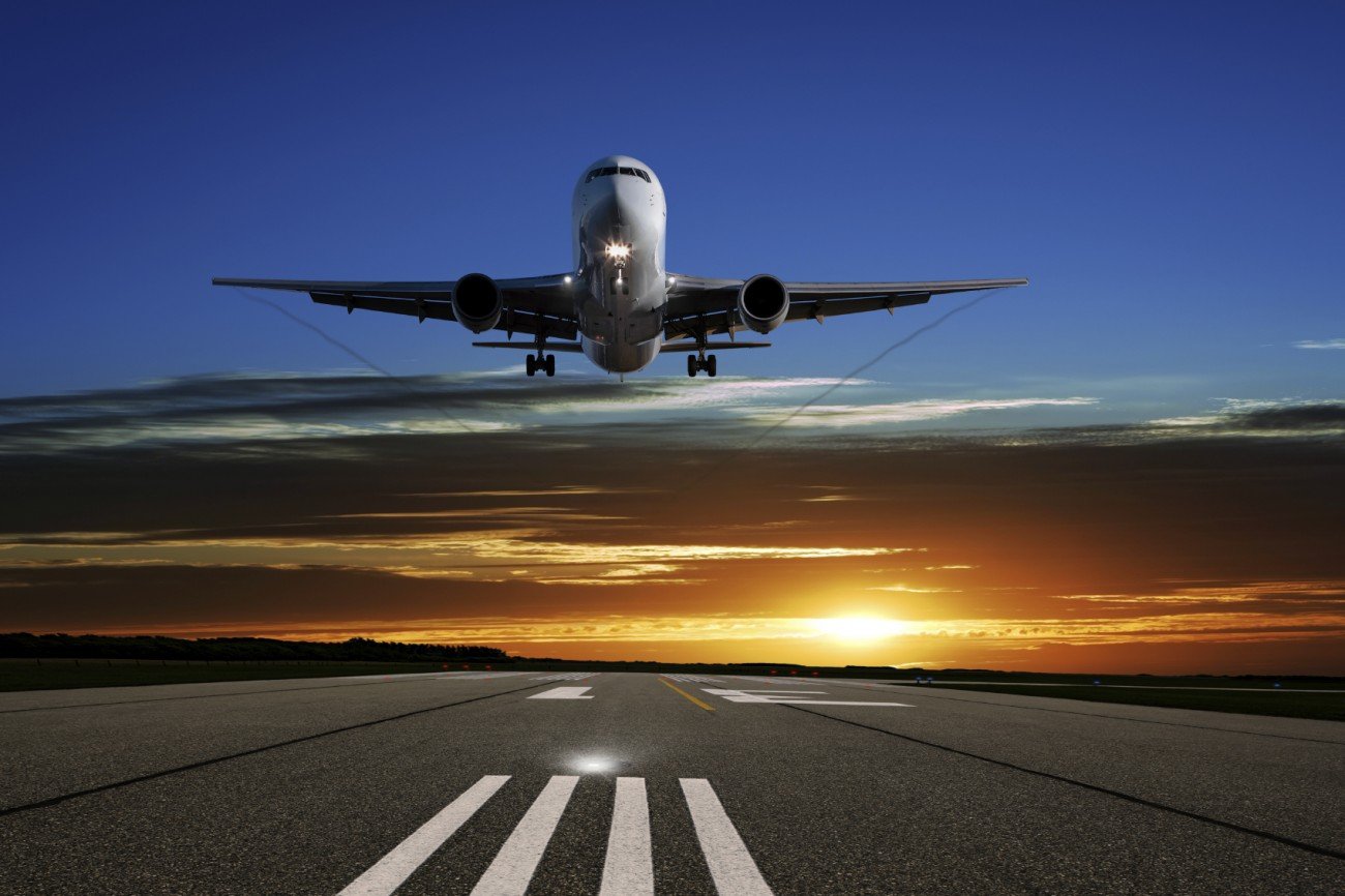 Самолет приземляется в аэропорту
