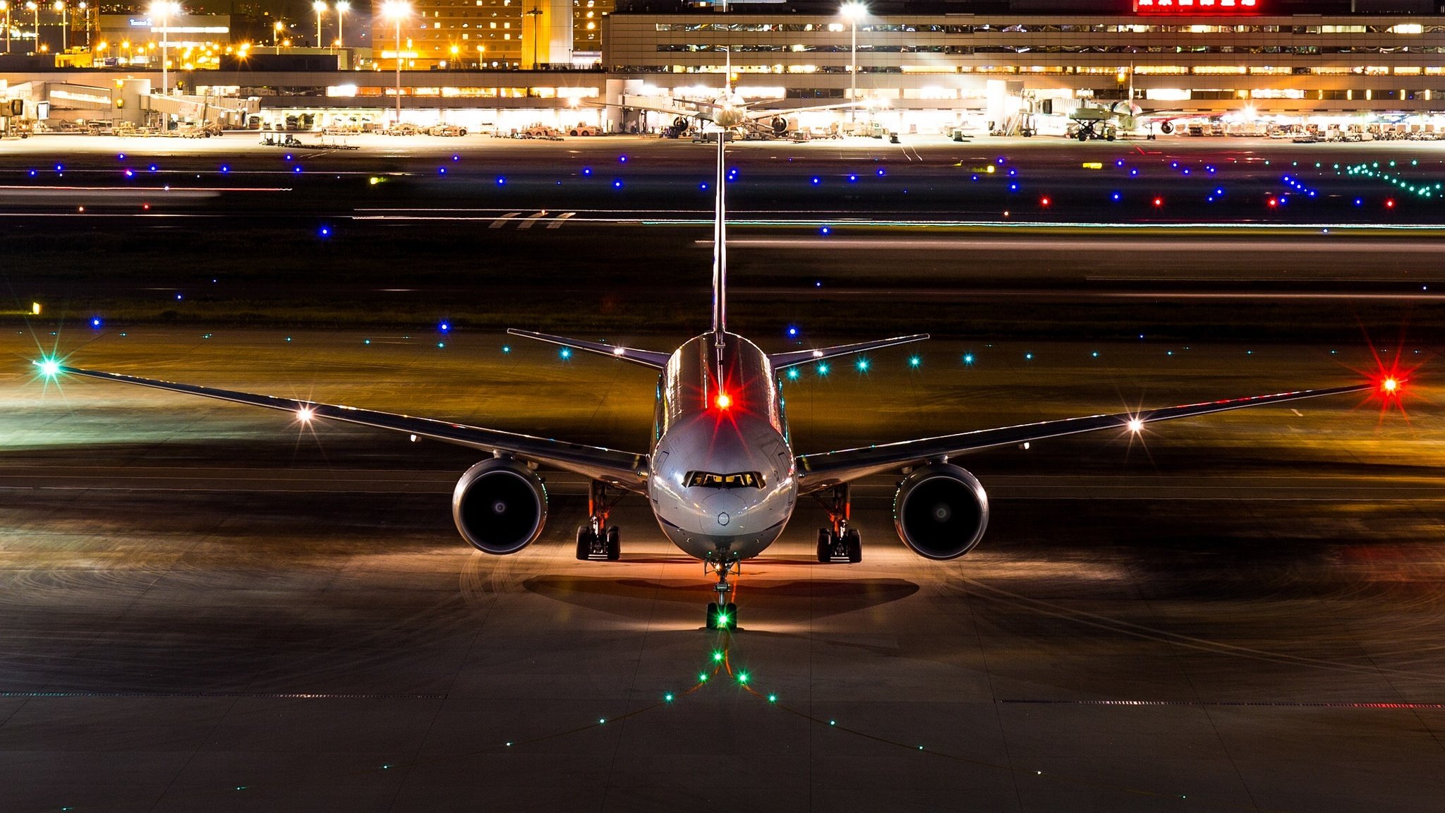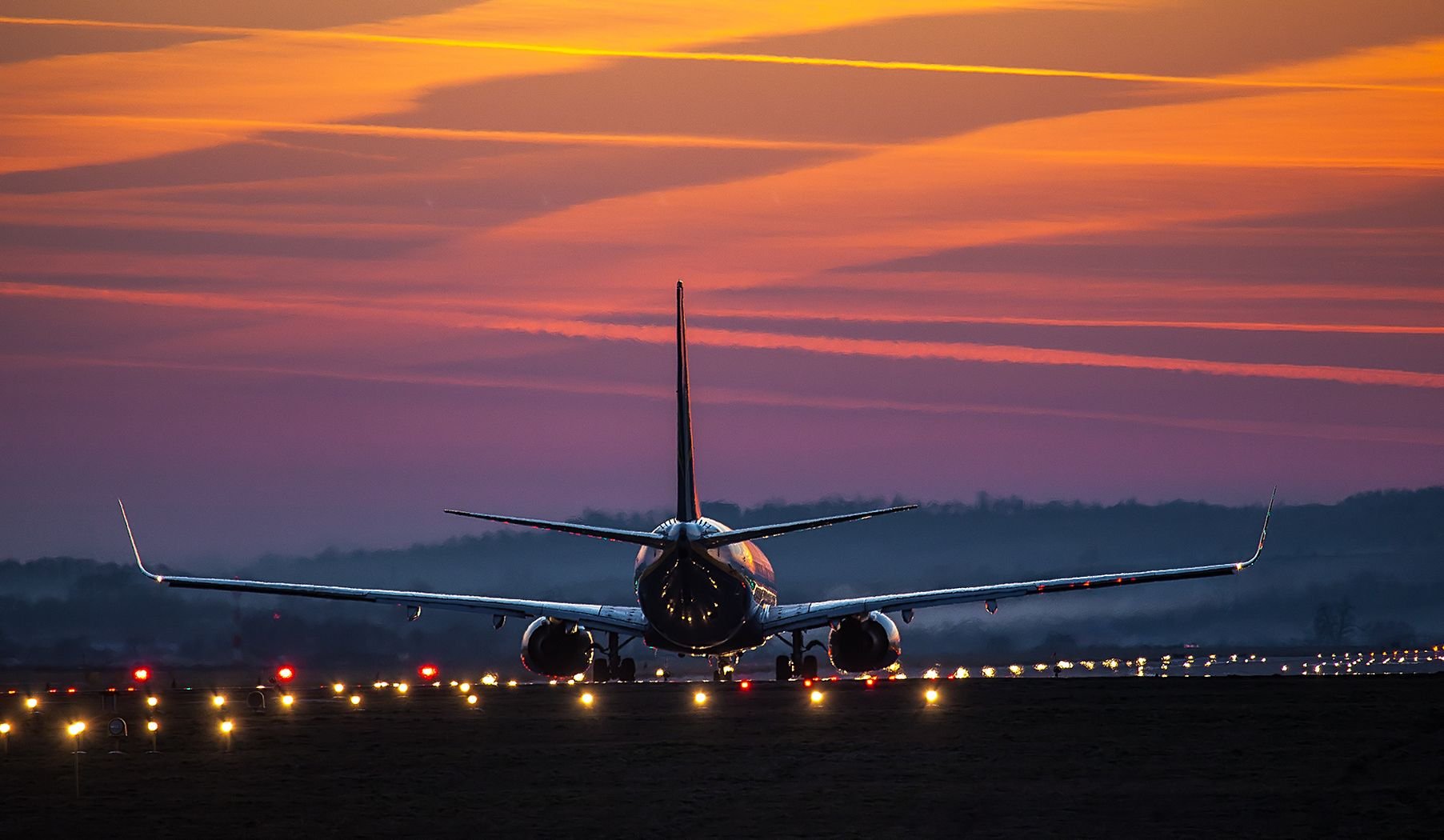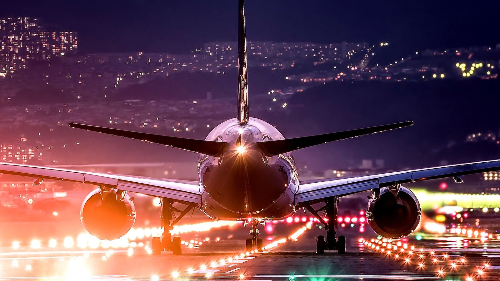 Самолёт взлетает ночью