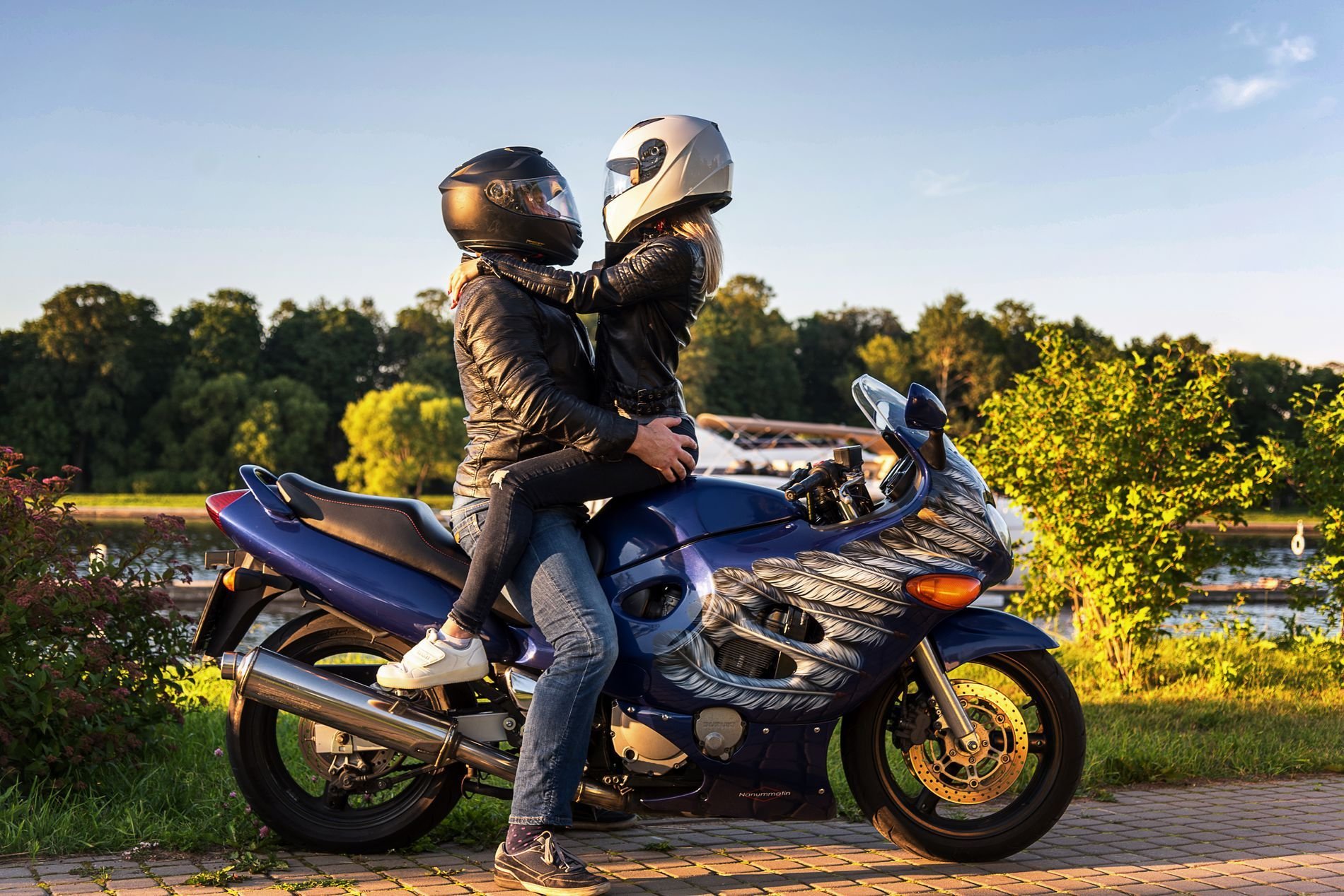Спортивный мотоцикл с пассажиром