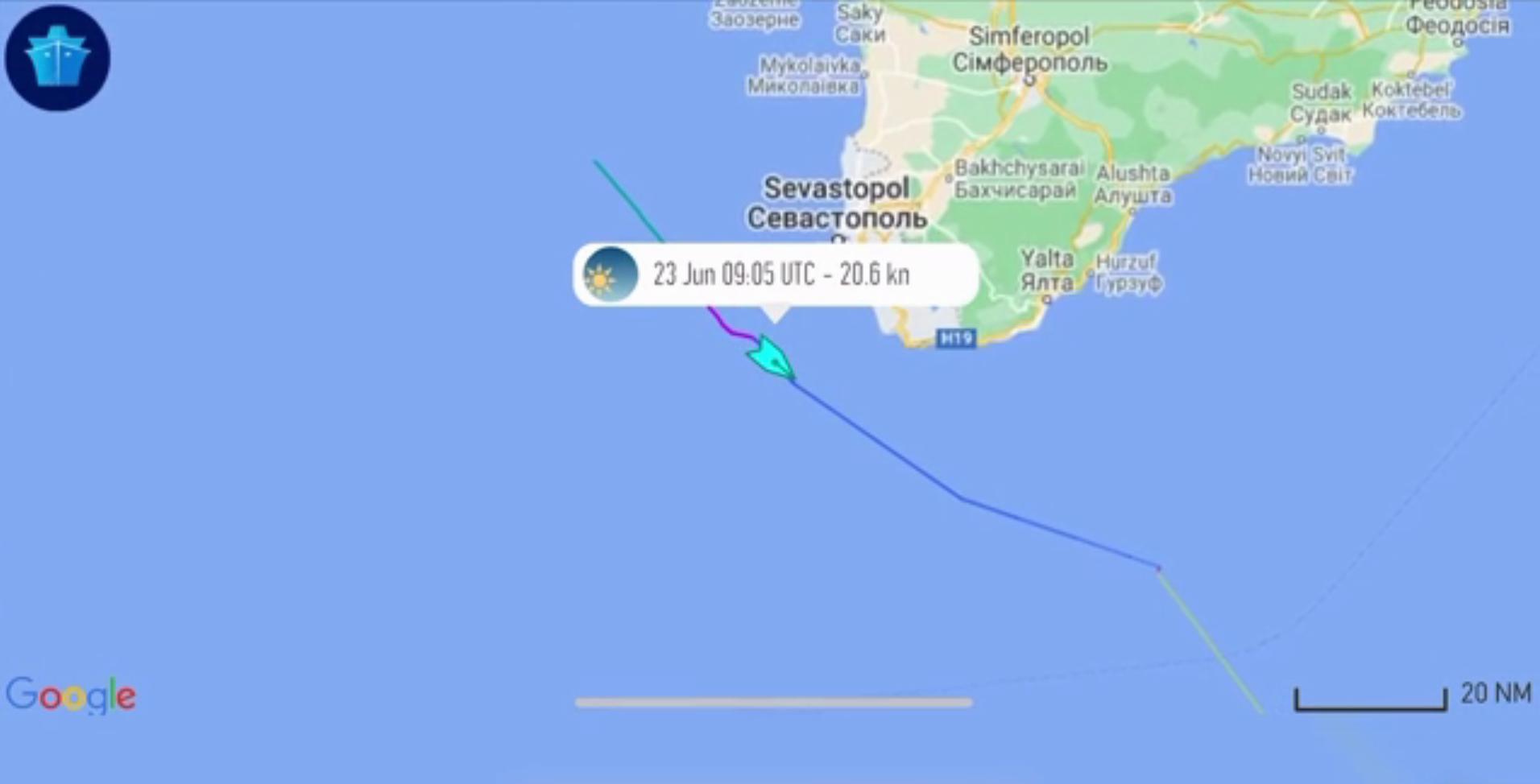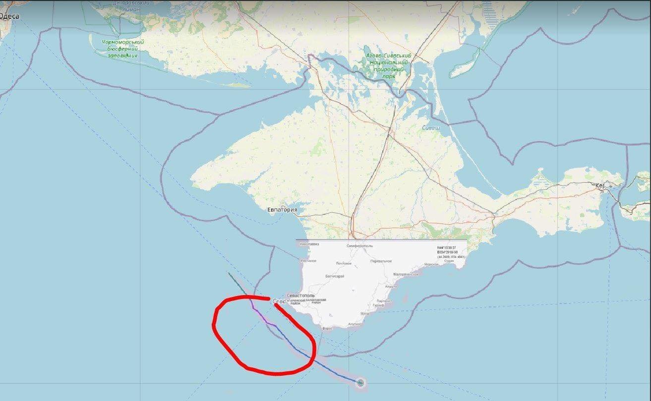 Курс эсминца Defender на карте