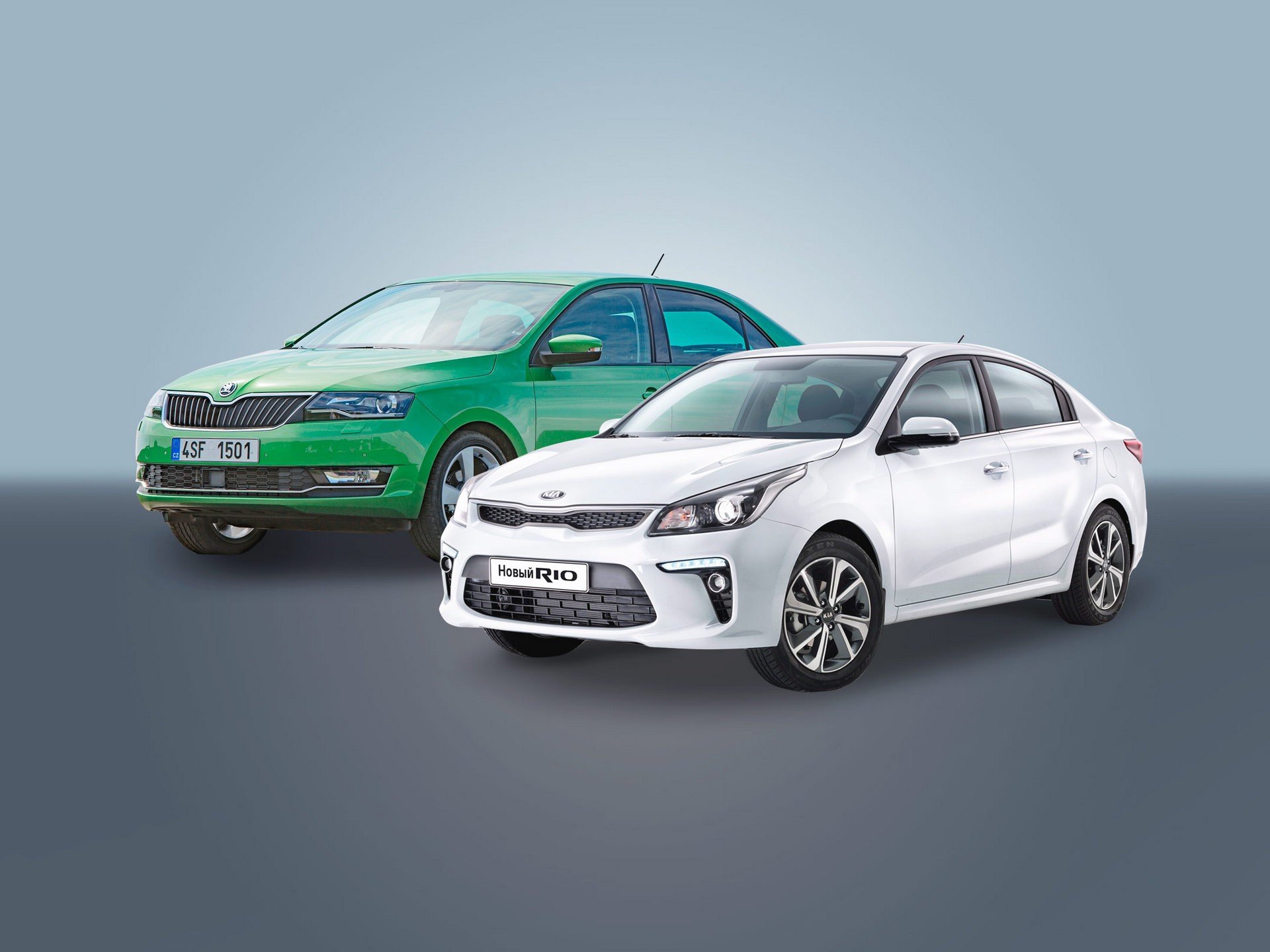 Шкода Рапид 2020 рядом с Киа Рио