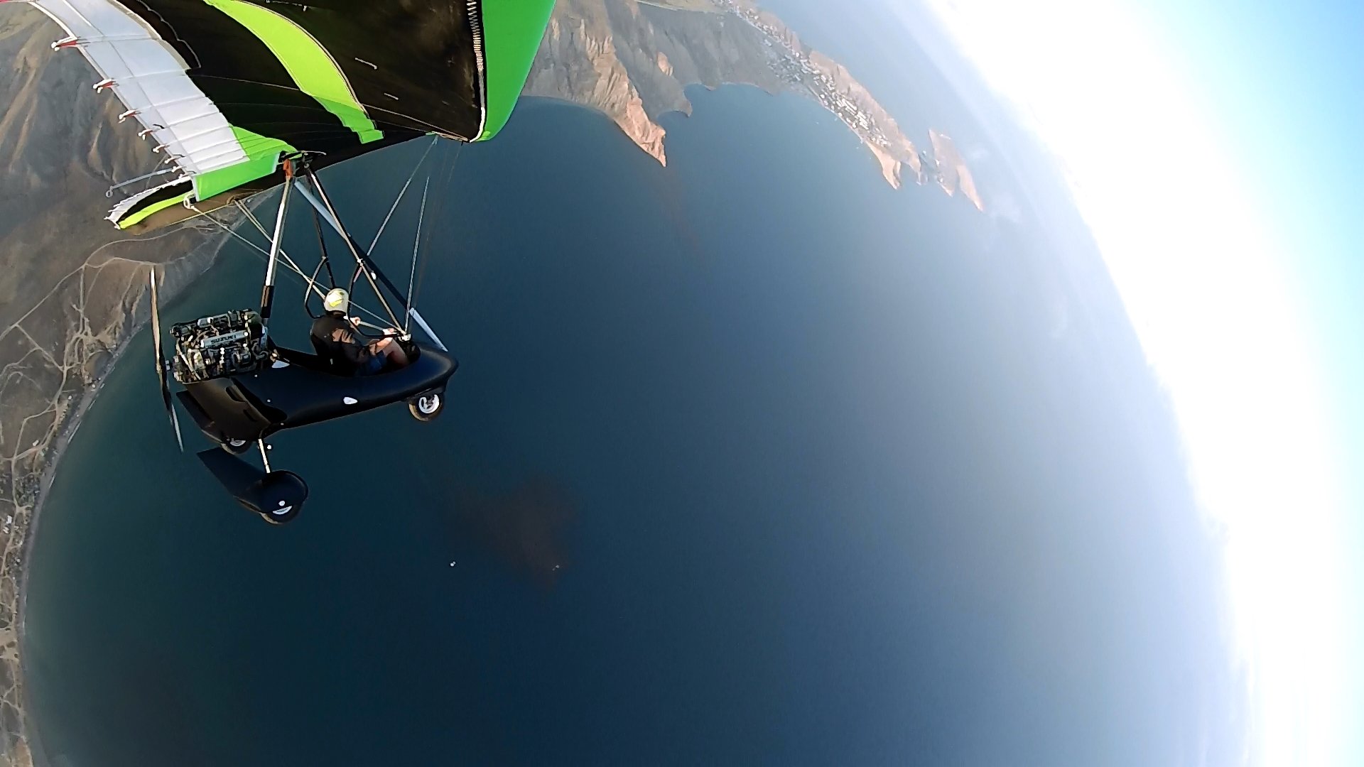 Полет дельтаплан над морем